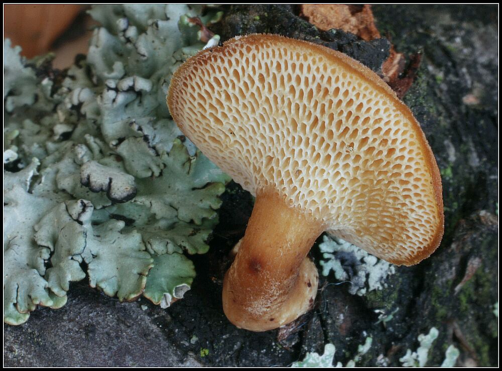 Vzpomněl jsem si, že jsem letos fotil také choroše plástvového. Všimněte si toho ochmýřeného okraje klobouku, to je dobrá pomůcka. No, ono to samozřejmě bylo loni na začátku září...