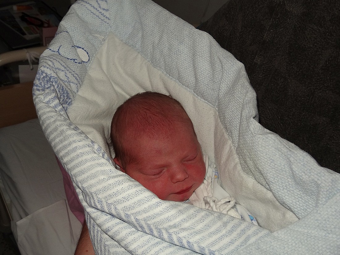 Pán Bůh požehnej. Hezčí obrázek by se těžko hledal. Jednodenní miminko. Mámino štěstí, tátova pýcha