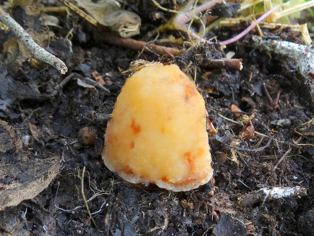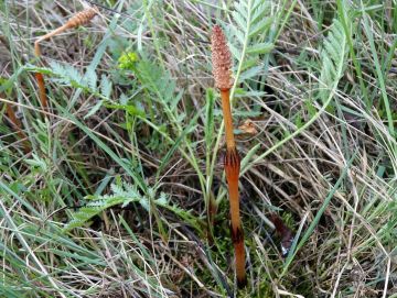 U téhle přesličky ale nemusel zapůsobit škodlivě jarní mrazík, jako spíš že už je ta plodná lodyha na konci svojí vegerace, a blízko vedle ní teď začne růst zelená, sterilní lodyha.