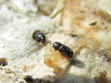 Ještě dodatek, teď můžeme tyto drobné, asi 2 - 3 mm broučky najít na outkovkách chlupatých, kde si vyvrtává chodbičky..