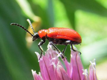 Tak tohle je ten chřestovníček liliový (jestli jsem ten název nezkomolil) o kterém tu padla jednou řeč - pro zahradníky škůdce, pro mě krásný fotogenický brouk...
