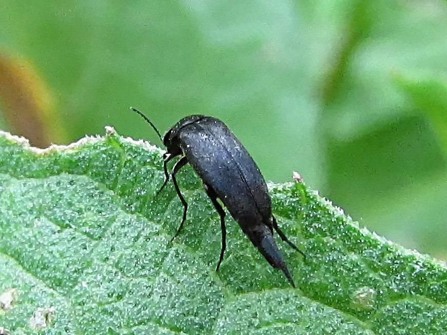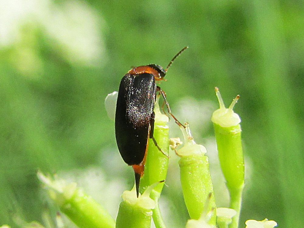 Tady je to těžké. Čeleď hrotařovití - Mordelidae u nás ovládá pouze jeden specialista. Je jich okolo 70ti vesměs podobných tmavých druhů. Tento barevný by sice mohl být Mordellochroa abdominalis, ale ten následující černý může být jakýkoli druh, ale třeba i samec k té barevné samici.