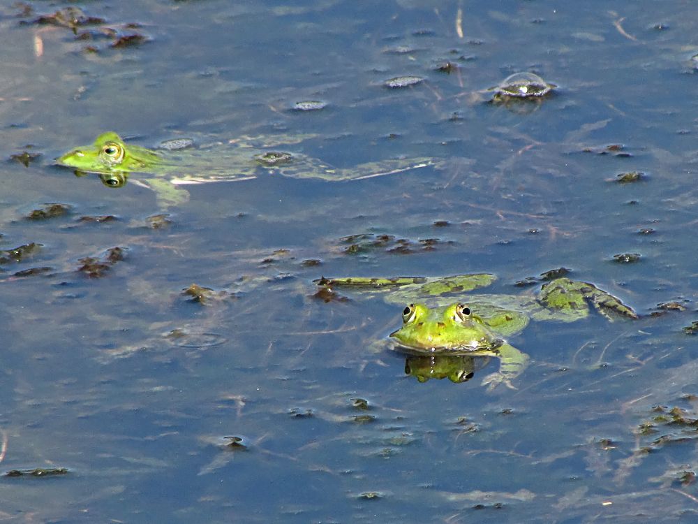 Nakonec ještě něco od vody...na stejných rybničních soustavách jsem na jaře fotil kuňky obecné, teď jsem mohl pozorovat křížence naších dvou vodních skokanů, kteří tam jsou hojní a kteří se v tuto dobu rozmnožují....