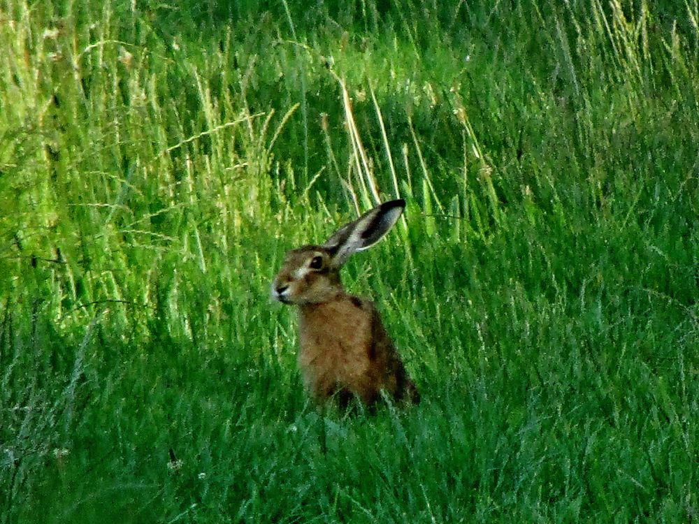 Zajíce u nás taky moc nepotkávám. Přesto se mi v květnu podařilo jednoho vyfotit. Běžel proti mně po cestě a byl ze mě tak vyvalenej, že zůstal sedět na bobku asi 20 vteřin a ani mu nevadil zvuk foťáku. Omlouvám se za připojení k tvému příspěvku.