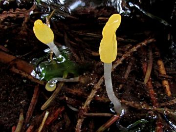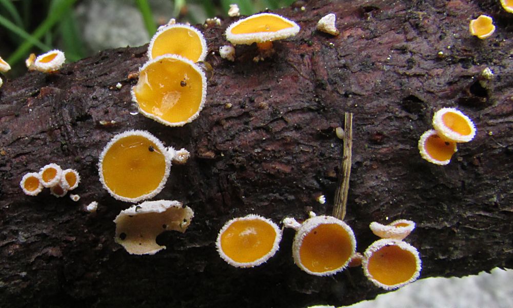 U vodopádů jsme udělali menší přestávku na jídlo, já jsem však na to neměl čas, protože jsem chtěl prozatím nalézt spousty vzácností. Při focení střevlíčků jsem narazil mezi kosodřevinami na mrtvé větve, které byly posety mnoha 3 mm plodnicemi hub, k mému překvapení se jednalo o další prvonález - Brvenku kosodřevinovou, lachnellula suecica.