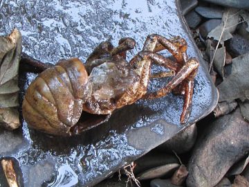 V lese vysychá potok, to je ale na druhou stranu velmi výhodné a hned můžu jít zkontrolovat populaci raků. Po půl hodině jsem našel mezi kořeny jen jednoho, také však dvě mrtvolky, smutné je, že by se asi mohlo jednat o račí mor