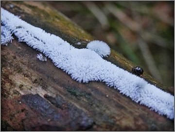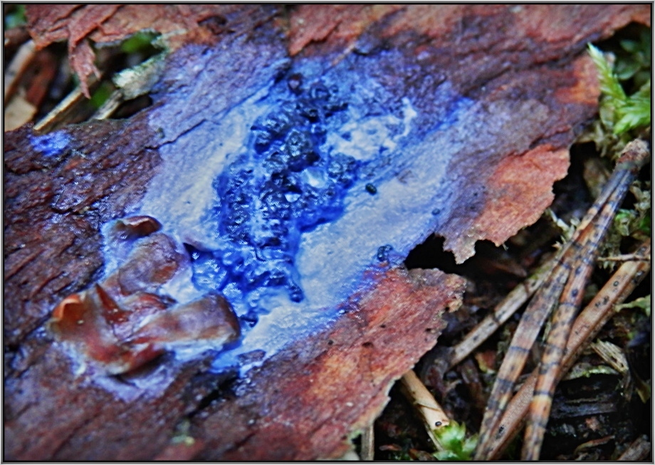 ... tohle asi není houba, ale zaujalo mě to, protože modrá se v lese hned tak nevidí. Nevíte, co to může být? Setkali jste se někdy s něčím takovým?