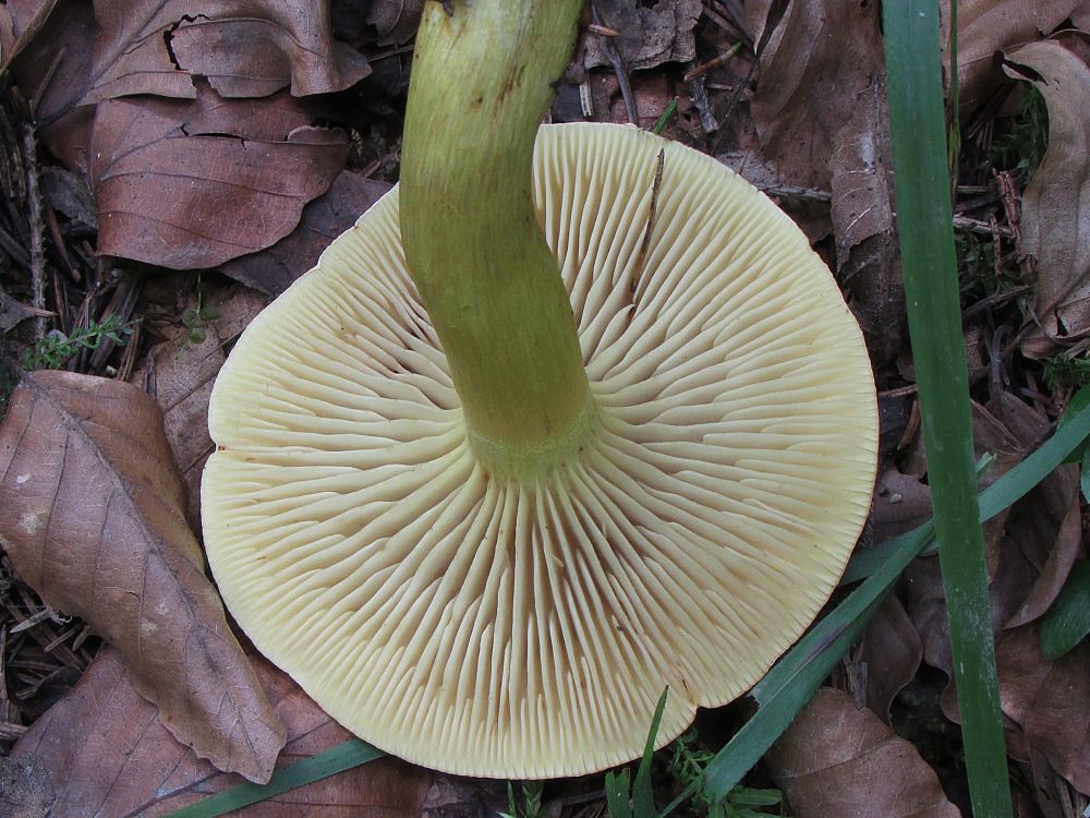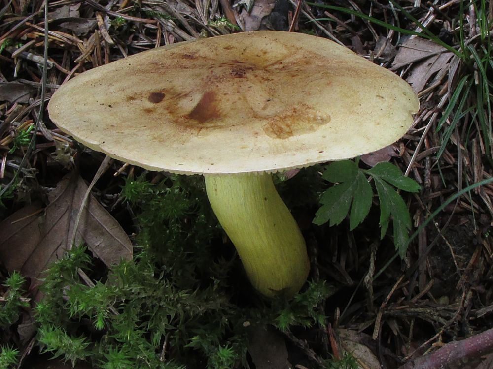 Podle velkého atlasu tohle vypadá na čirůvku sálající...tady přecházela smrčina v listnatý les, houba měla zajímavý silný zápach, který neumím popsat...