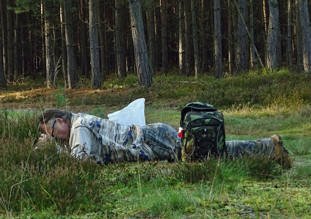 Z hlediska fotografováni je to docela optimální, navíc si odpočinou chromá záda....Během výpravy se mi "neudělalo dobře", dle doporučovaných pokynů jsem několikrát zakašlal, lehl si krátce na záda. Laskaví kolegové to komentovali větou: už to s ním asi seklo...To se hned lépe vstává...