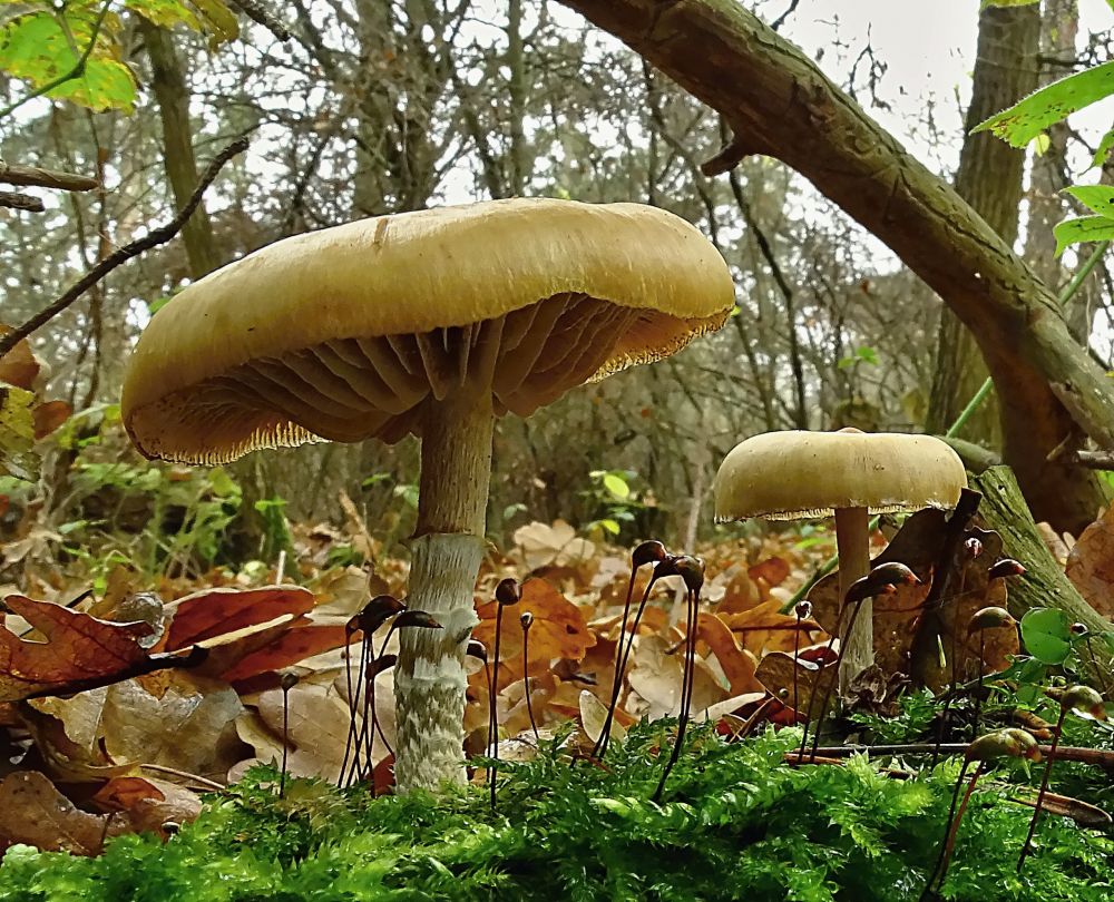 ...víc než dvacet druhů hub viditelných mým zrakem znamená že jich tam musí být mnohem víc(mokro,šedotmavo,po zemi jsem nelez)