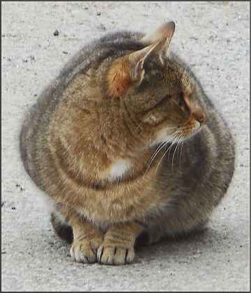 A ty jsi kdo? Podezíravá a nedůvěřivá kočka si mne zkoumavě měřila u skládky kmenů...