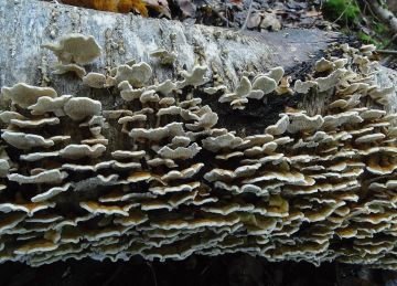 Mrtvý stojící březový kmen počaly okupovat nějaké dřevomilky s otazníkem.