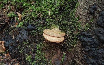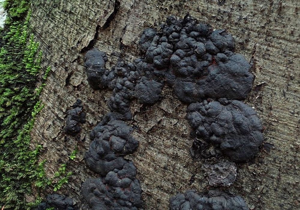 Zleva spálenka skořepatá, lesklokorka ploská, spálenka skořepatá...