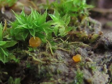 Plodnice (teda alespoň jednu, protože zbytek jsem vytratil) této houbičky, kterou jsem našel na vlhkém místě na začátku srpna minulého roku na zahradě, jsem dal na určení panu Stanislavu Tutkovi, kterému ještě raz děkuji za zájem o identifikaci zaslaných položek. Napsal mě, že by to mohla být zemnička prvoklíčová, Octospora cf. gyalectoides, ale pokud vím, pro přesnější určení tady hraje roli i určení hostitele...fotografované plodnice měli přibližně jeden milimetr...fotil jsem je asi dvě hodiny, susedi, co za plotem obráceli seno se na mě podivně dívali, jak mě viděli u hromady dřeva na vhkém místečku, kde skoro nebyla tráva ve stínu, jak tam furt klečím s foťákem a fotím pro ně asi hlínu