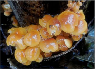 Máš to krásný, Karle...Docela se bavím komentářem od Tebe, fotografa, a od těch druhých...Tak pro nevěřící Tomáše. Takhle ten trsík vypadal v reálu...Pršelo, odkryl jsem kousek kůry a v dešti fotil..Plodničky, které byly pod kůrou, byly poněkud tenčí a subtilnější...