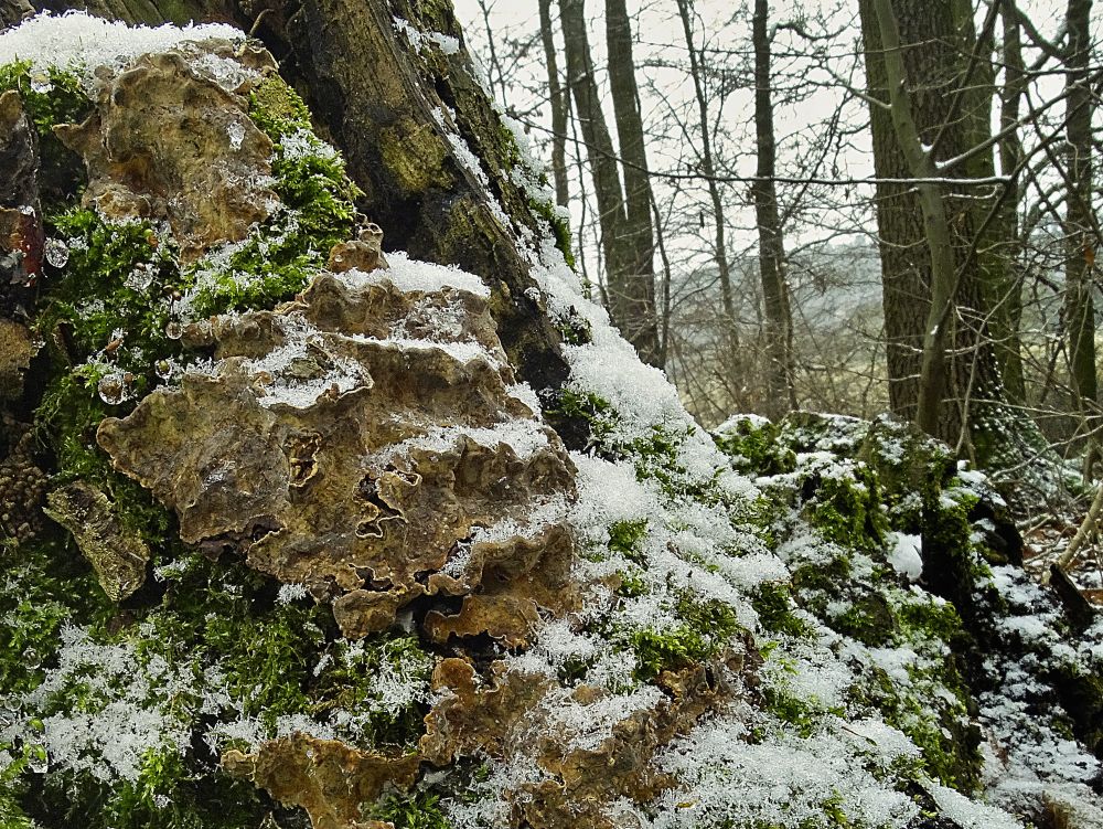. Ale mne by zajímaly třeba ty ďubky (zbytky borky?) na dřevě. Přijde mi, že je to totéž, co na této mé fotce: