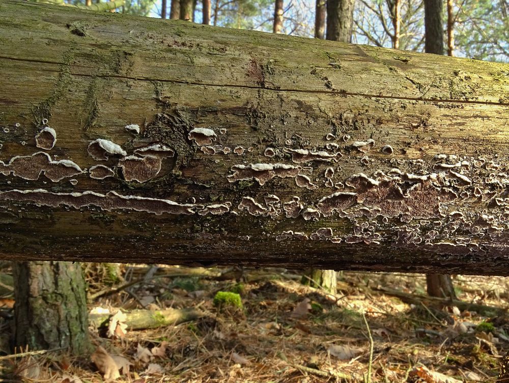 ...nevim jestli to pomůže,ta kvalita je hrozná...A ta kláda přes cestu má průměr asi 15 cm.Je to převážně borovicový hájek,ale duby,habry a břízy jsou tam ledackde.No,a já tyhlety stromy rozeznám až když je na nich nějaký "ovoce nebo kyti".Ke všemu mi tahle kláda připomíná od pohledu smrk a ty jsou tam odsaď trochu dál,... a lepší fotku nemam.