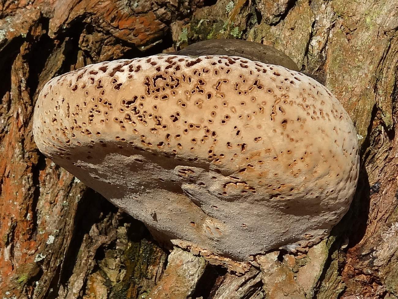 Měl by to být Spongipellis pachyodon, česky plstnatec tlustoostný. Určoval MK. Druh je z hlediska ohrožení řazen do kategorie CR (kriticky ohrožený).