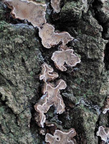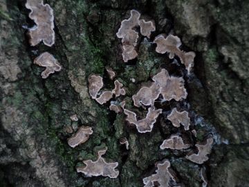 A jednu vzácnost - Aleurodiscus disciformis, kolem Brna jej lze na dubech nalézt, jinde se pro něj mykologové marně škrábou do krpálů případně si i půjčují žebříky.