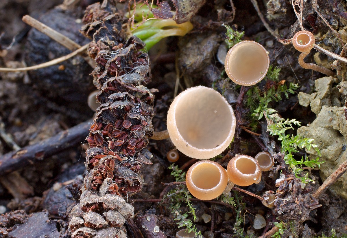 .. já tedy nevím, ale já bych se asi v tomto konkrétním případě vystačil s jehnědka, Ciboria sp. Standa píše, že tam byla jak olše, tak líska. Takže. Jedna plodnice určená mikroskopem může být to a druhá ono. Nebo obě mohou být to nebo obě ono