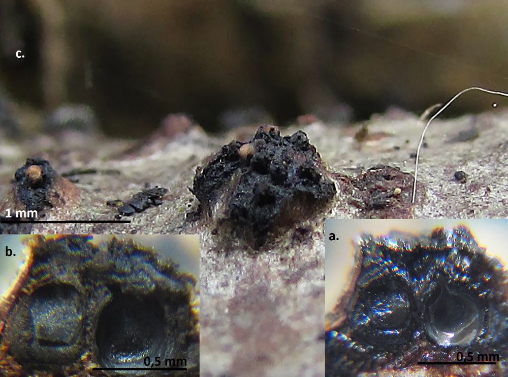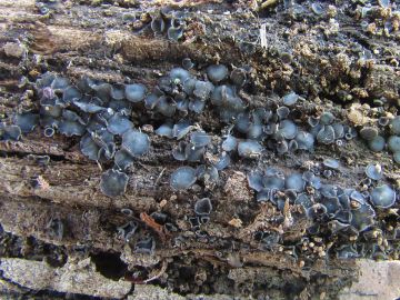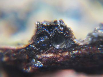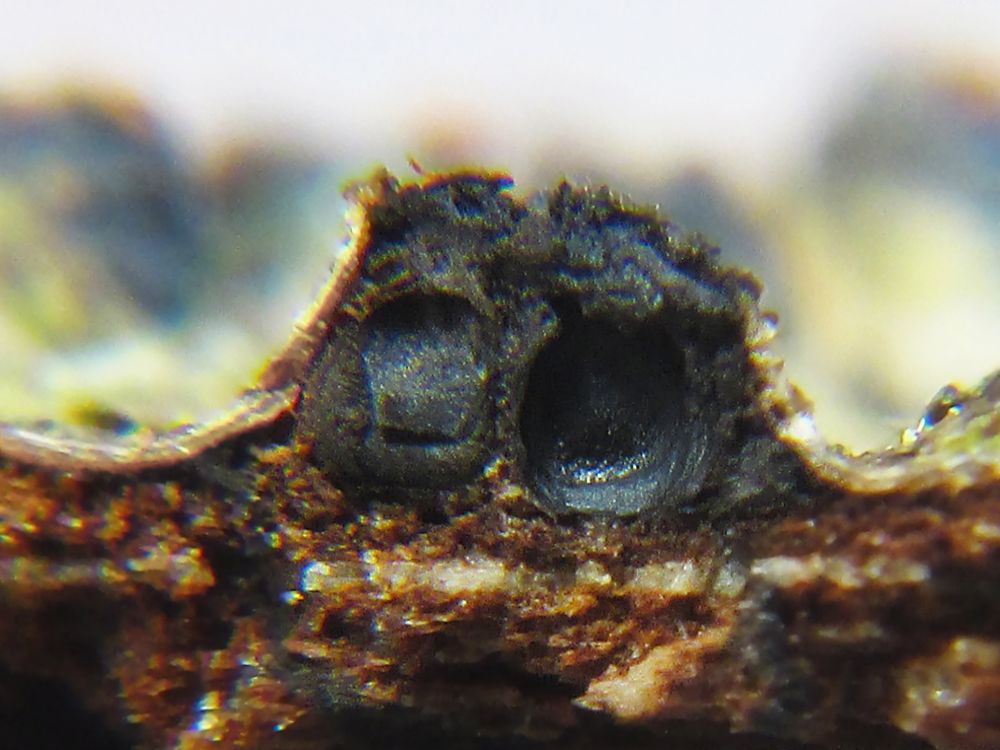A na konec ještě přidám něco z letošního roku, podařilo se mi určit jako polštářnatku olšovou, Diatrypella favacea (syn. toccianena) na spadlé olšové větvi...