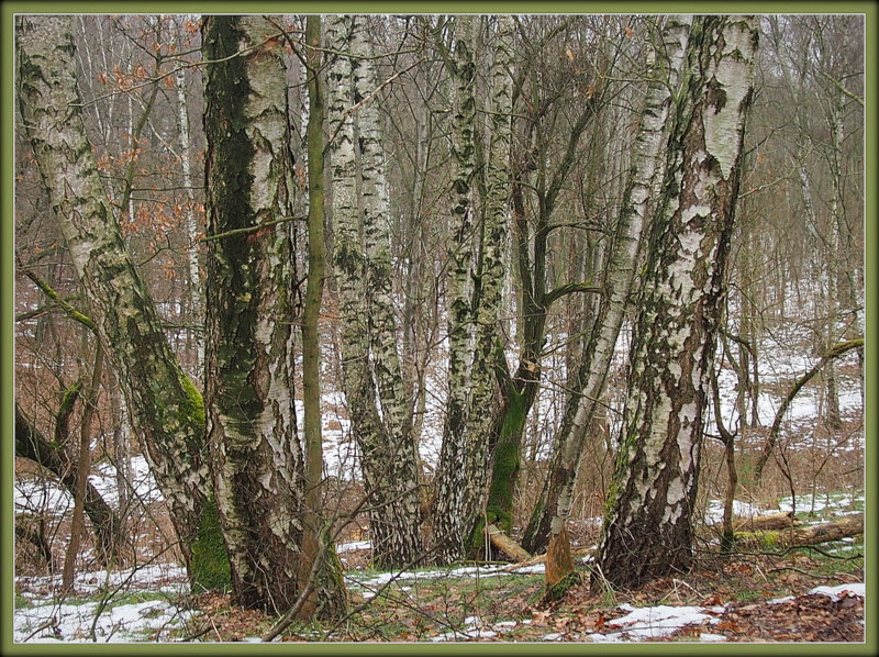 Nedávno jsem navštívila lokalitu mého dětství a mládí. Nedalo mi to nevyfotit svědky tohoto krásného období. Když se mi začala zapalovat lýtka, byly tyto kmeny zeleným březovým náletem....