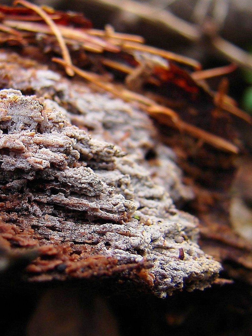 Napadl mě Basidiodendron - dřevovník. Ten roste na takovém silně rozloženém holém dřevě. Ale může to být jistě ledacos.