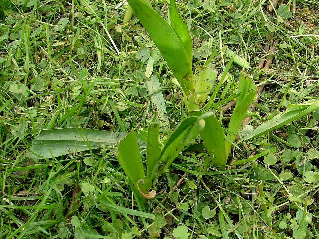 Chtěl jsem Zdenovi ukázat, jak u nás rostou kolem potoka ocúny, ale po nájezdu sekaček tam zbyly jen takováto torza...