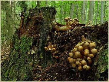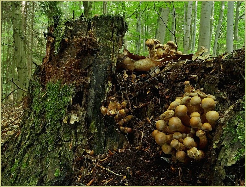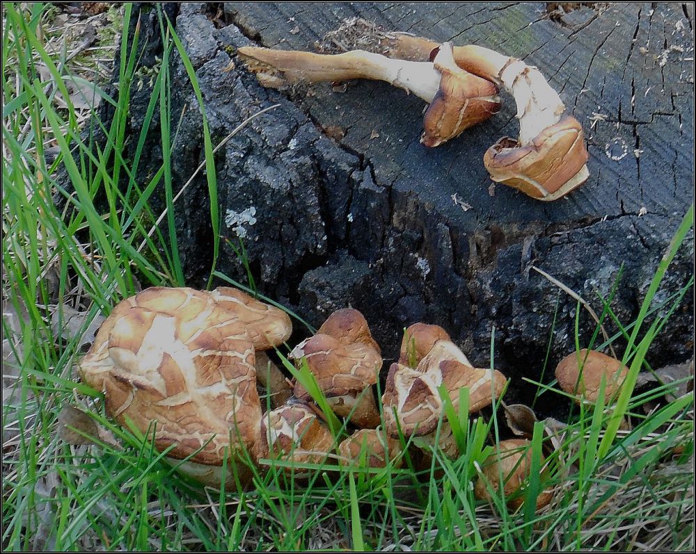 Nějaká lupenatá houba na pařezu pravděpodobně to byl kdysi dub. Pařez byl obrostlý ze všech stran starými (na tomto obrázku), ale i mrňaty. Co to ovšem je, nevím.