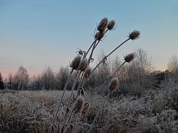 Vzpomněla jsem si, že jsem kdysi fotila nějaký bodlák s jinovatkou ještě se starým foťákem a bez stativu, který jsem si koupila až na jaře.