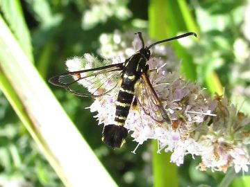 Jedná se o nesytku roupcovou, Synanthedon vespiformis. Nejsem lepidopterolog, takže o ní víc neřeknu.