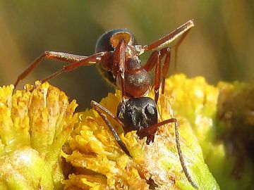 mravenec (asi rod Formica) na vratiči obecném...To už není fotka z lužních luk podél Setiny, tam se totiž vratiče nevyskytujou. (viz předchozí příspěvek).