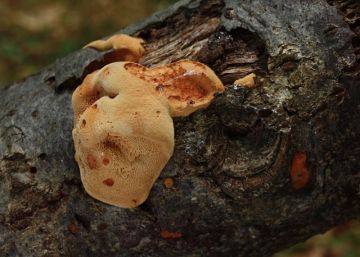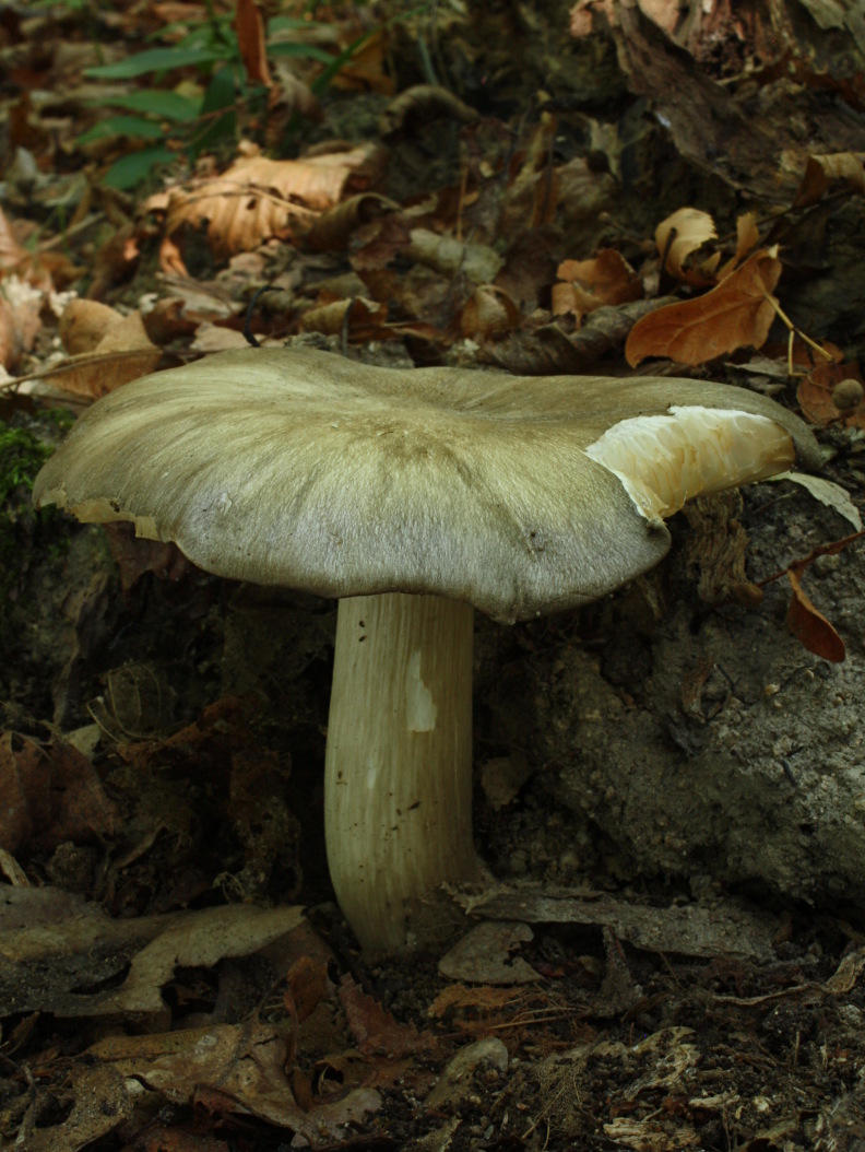 Tak jsem si včera po práci vyrazila do lesa nad sídlištěm, geograficky to jsou Devínske Karpaty. Většinu lesa tvoří dubohabřiny promíchané třešněmi, v údolí potoka je i bučina, výjimečně kousek borové monokultury, podloží je nějaká zvětralá žula nebo co. Byla to bída, mezi suchým listím vykukovala suchá hlína, pozemní houby skoro žádné, dřevních málo. První fotitelná byla penízovka. Vzpomněla jsem si, jak jsme tu nedávno řešili rozlišovací znaky proti štítovce, tady jsou snad zřetelné. (A ne, nevím, proč jsem ji vyfotila zrovna takhle blbě na výšku.)