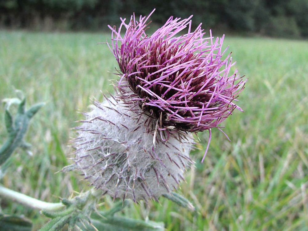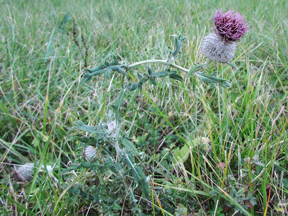 Když se pcháči šedému dobře daří, dokáže být vysoký snad 2 metry. Jenže tady roste na louce, která se několikrát do roka seče, a tak si nemůže velký růst do výšky dovolit, ale je menší. Ale všimněte si, že má na lodyze pouze jeden květ a že má květní stvol pod květem dlouho bezlistý.