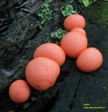 Tipuju podle barvy a tvaru čihovitku (Ascocoryne sp., teleomorfa). To vlčí mléko má docela zajímavý povrch, musím ho příště v lese prozkoumat, doteď jsem si toho nějak nevšimla.