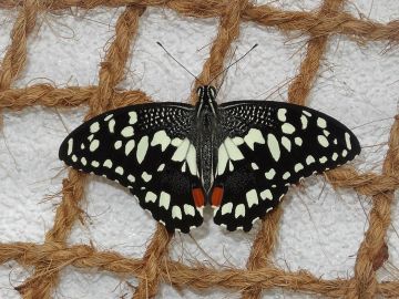 Myslím, že to nebude nutné...Papilio demoleus, řekl bych. Od jeho Afrického protějšku Papilio demodocus se liší kostkovaným lemem křídel a červenou skvrnou na zadních křídlech.