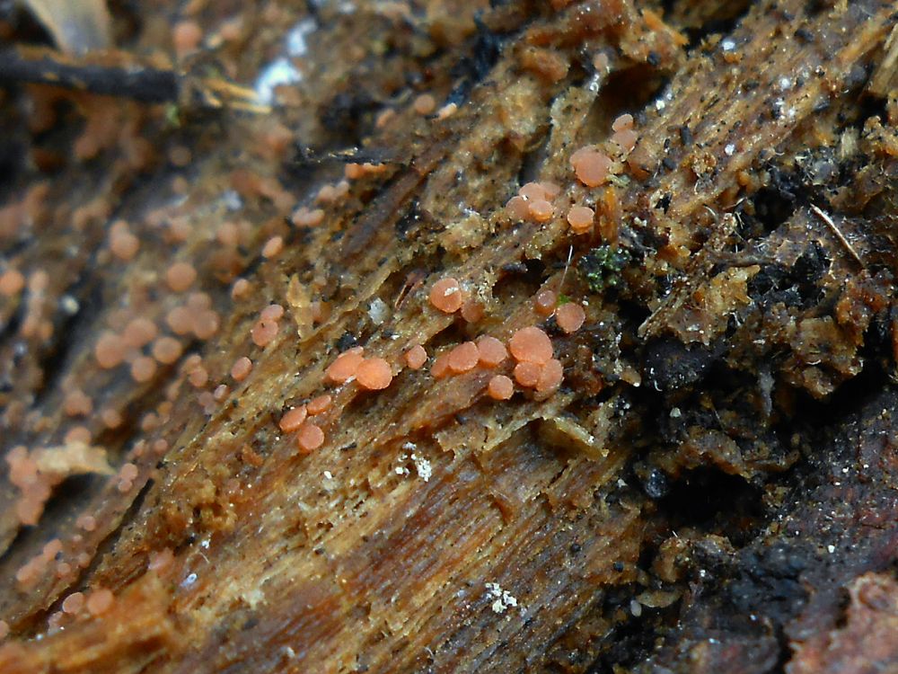 Zajímavá houba, máš položku? Docela by mě zajímalo, jak to vypadá pod mikroskopem, takhle od oka moc nevím kam s tím (připomíná mi to nejvíc Iodophanus anebo Pyronema sp., ale ani jeden z nich by AFAIK neměl růst na dřevu).