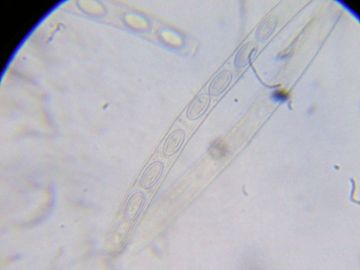 Většina výtrusů vypadala hladce, tadyty jsem vyfotil, protože je u nich viděl aspoň nějaká ornamentika. Jinak viděl jsem tam (ale jen ojediněle) i výtrusy tak třikrát menší než tyto s jednou tukovou kapkou.