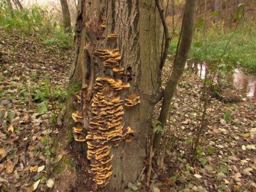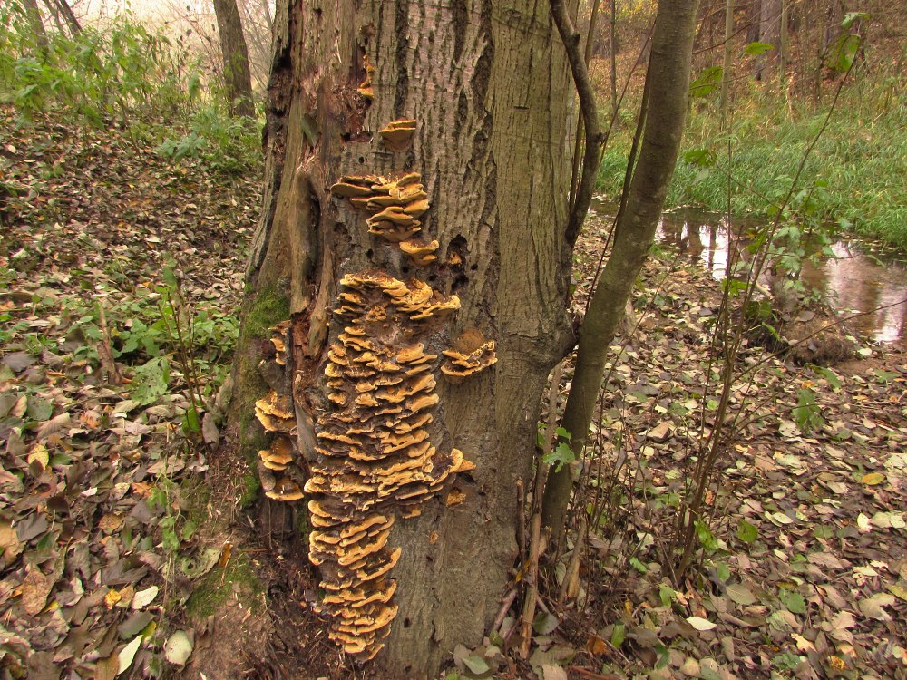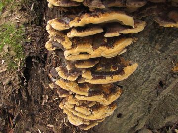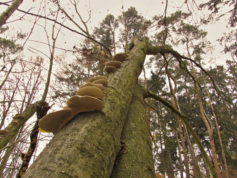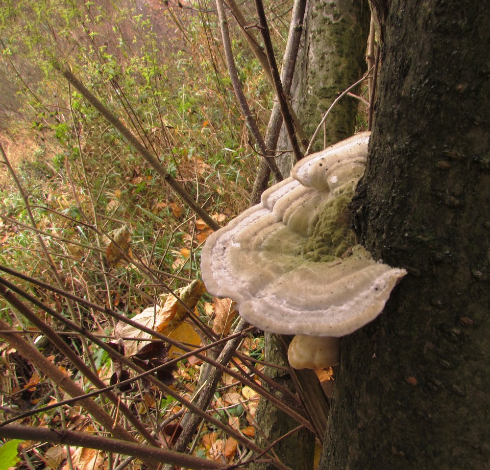 ...tady asi outkovka chlupatá nebo že by mladý troudnatec kopytovitý? Nevím, zda je na stromě více druhů, většina byla nad hlavou...