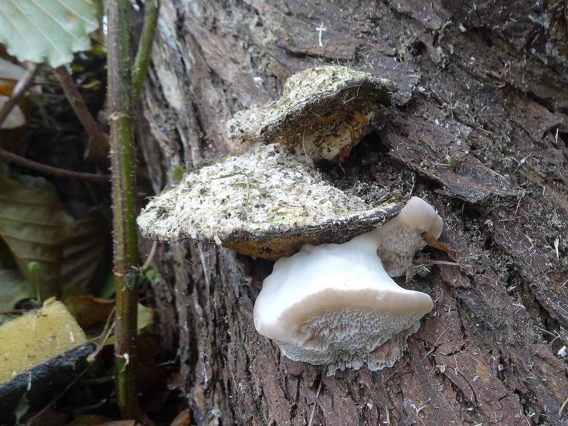Přemýšlím, zda by to nemohl být mlaďoučký rezavec lesknavý (Inonotus radiatus). Olše a rourky stékající na kmen mne k němu vedou. Ale to navíc bude asi muset být albín
