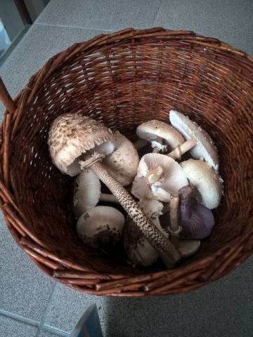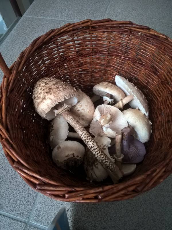 Tyhle menší bedličky sbírám v Polabí v tuto dobu velmi často. Napadá mě bedla Konrádova (ale ta je uvedena červeném seznamu v kategorii DD), nebo má někdo jiný názor? Roste tu hojně od léta až do zámrazu... Viz košíček z minulé soboty - porovnání s bedlou vysokou je výmluvné...