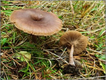 Přečetla jsem si něco o strmělce aromatické a tam by měly převažovat šedé barvy, bělavé ojínění klobouku a je subtilnější - klobouk do 5cm.