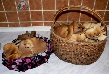 Také se dovoluji pochlubit, že jsem dnes přivezl "pár kilo" hlívy. Nyní u nás roste skoro všude. Toto je z nového místa, kde roste klasicky na buku. Minule, pro připomenutí, jsem tu dával z jeřábu ptačího.