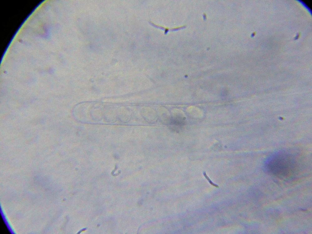 Výtrusy elipsoidní, žádnou ornamentiku jsem nezaznamenal, velikosti asi kolem 15 x 8 µm, myslím, že jsem tam zaznamenal i parafýzy zakončené malou hlavičkou. Excipulum se skládalo z kulatých nebo elipsoidních buněk. Kdyžtak plodnice mám doma a je možné je opětovně zmikroskopovat.