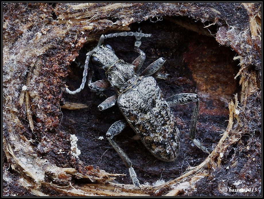 Rhagium inquisitor - tesařík (kousavec) korový, jeden z nejběžnějších tohoto rodu, často takto zimuje pod kůrou jehličnanů...