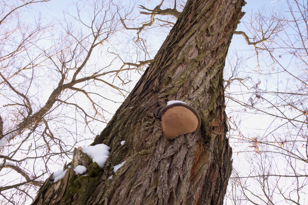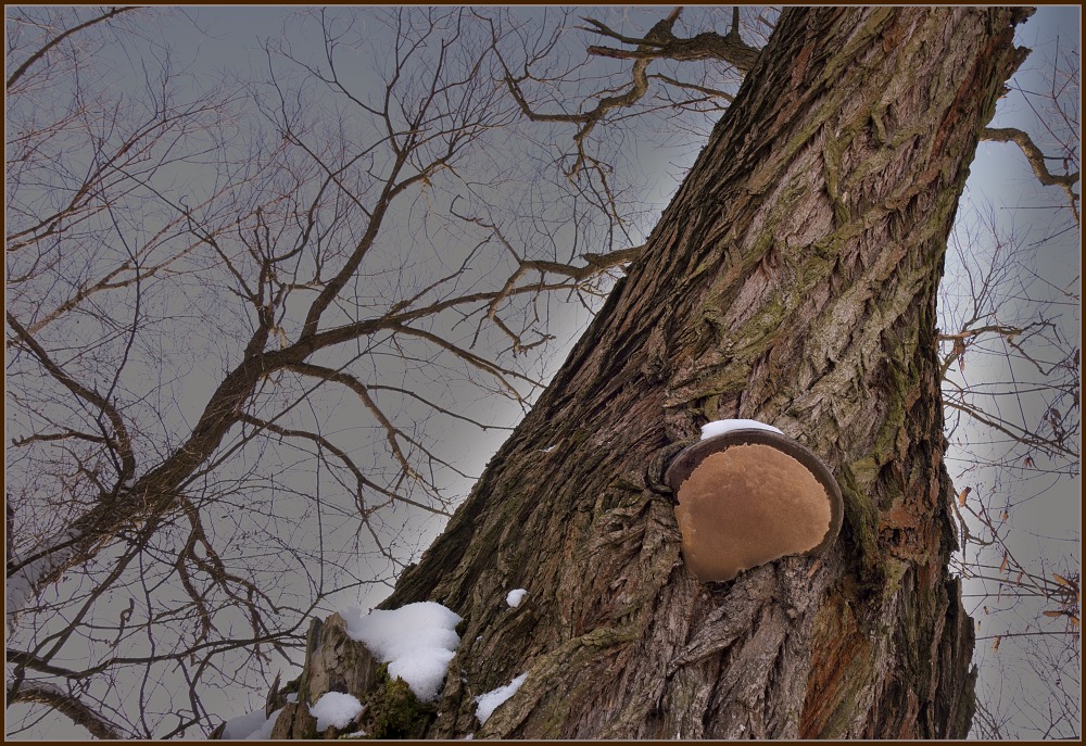 ta fotka z jiného úhlu se mi zdá jako jednoznačně nejlepší z trojice. Jinak houba na tmavém pozadí proti světlému nebi se skutečně fotí dost špatně. A pokud je fotka v dostatečném rozlišení, řešil bych to asi ořezem, kde by byl jen kmen a houba.