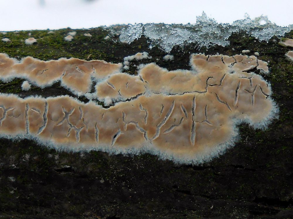Neurčená kornatcovitá houba. Kupodivu se mi ji podařilo zmikroskopovat. Výtrusy (o velikosti 11-12 x 7,5 µm) měly zajímavý tvar připomínající buchty.