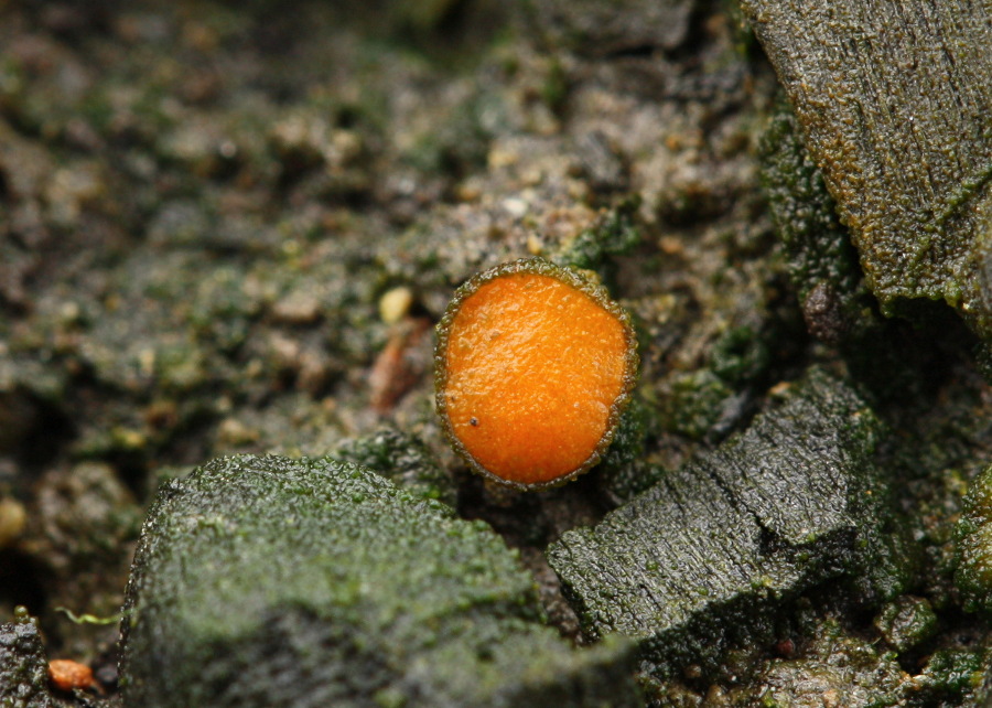 ... a dalšího askomycetu, který rostl na stejném ohništi hned vedle ní. Vzhledem připomíná cosi mezi řasnatkou a chřapáčem, vřecka ale byla slabě amyloidní, což chřapáče vylučuje. Nepodařilo se mi určit ani rod, plodnice byly silně poškozené mrazem a napadené jinou houbou, výtrusy jsem nenašla vůbec. Snad vyrostou někdy během roku znova.