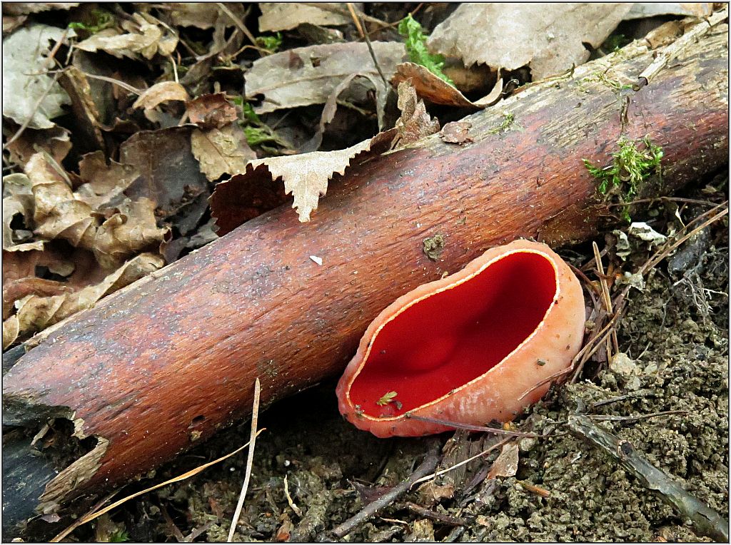 Ten můj rybník je jen takový zarostlý žabinec. Samé osiky, břízy, vrby. Vždycky to tam proříznou a větve nechají na místě. Všechno už je porostlé mechem. Ohnivce byly schované pod listím, jen jeden kousek vykukoval.