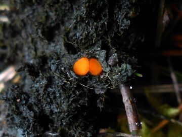 Asi něco z rodu Cheilymenia. Neměřil jsem, ale odhaduji, že apothecia měla kolem 2 mm (max. 3 mm) v průměru.
